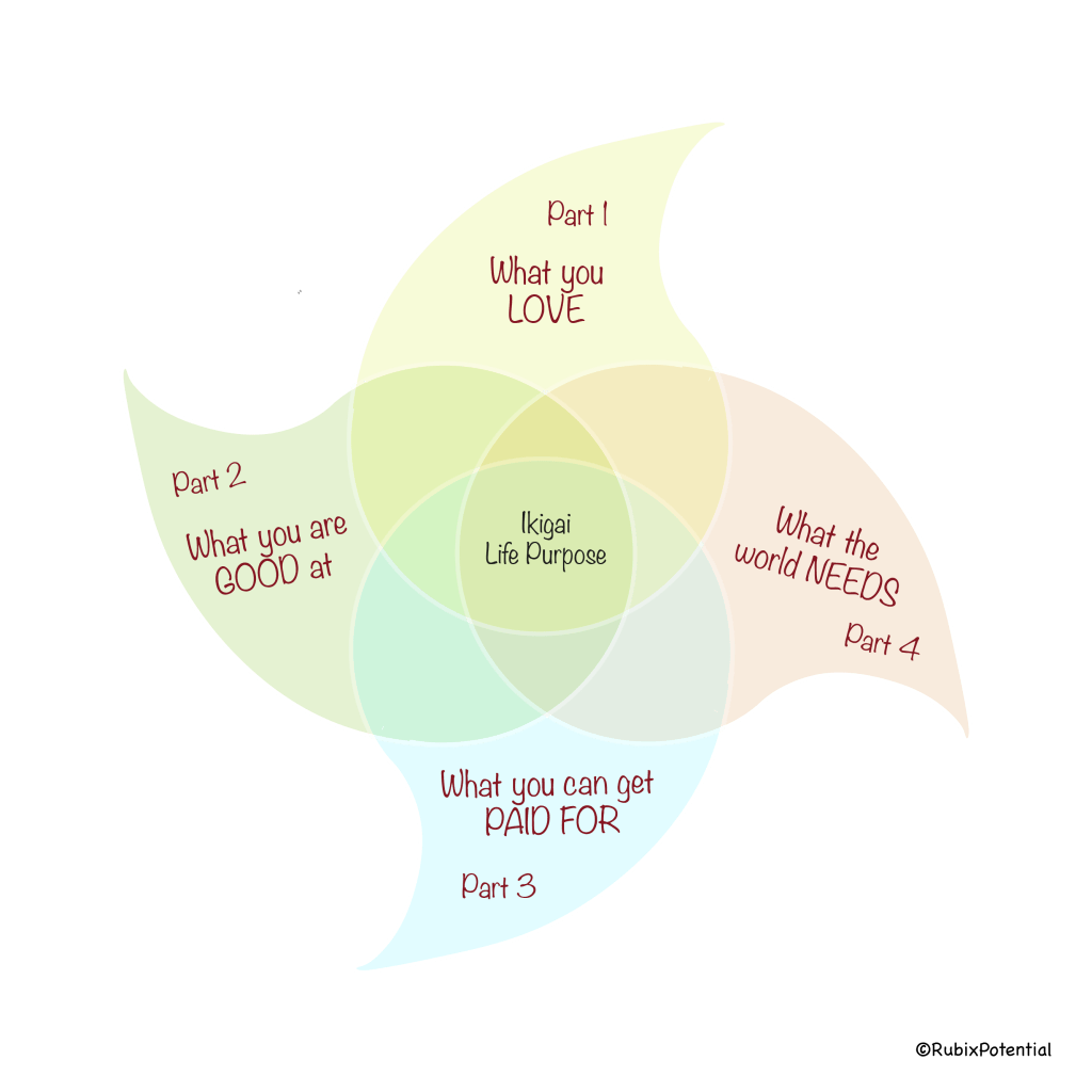 As a beginning we are going to start from the definition of “Ikigai”. The actual meaning is iki=life and gai=worth, your life’s worth, “reason for being”. It is a method through which a person can find his life’s purpose, a deeper meaning for his personal existence.